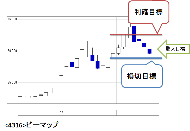 高値圏の押し目を狙ってみる!【買い】<4316>ビーマップ =ツクヨミ 大内
