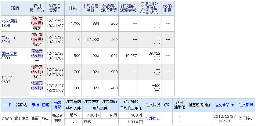 | 3244 サムティ | 買 | 12/27 | 6 | 51,000 | 49,500 | -9,000 |