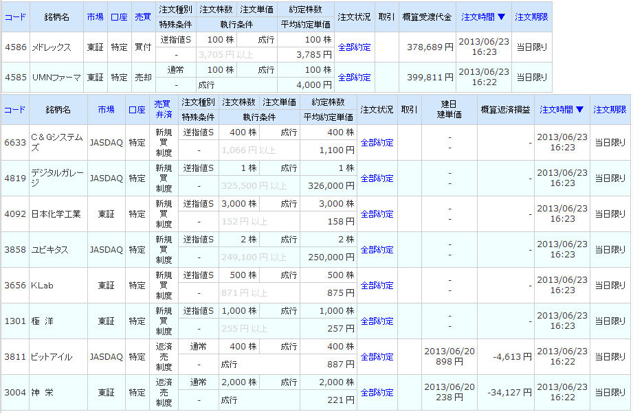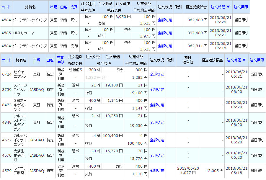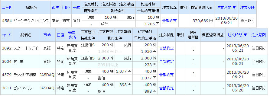 2013/6/26の更新で、以下の銘柄に株式分割が発生し、過去株価の調整が行われました。