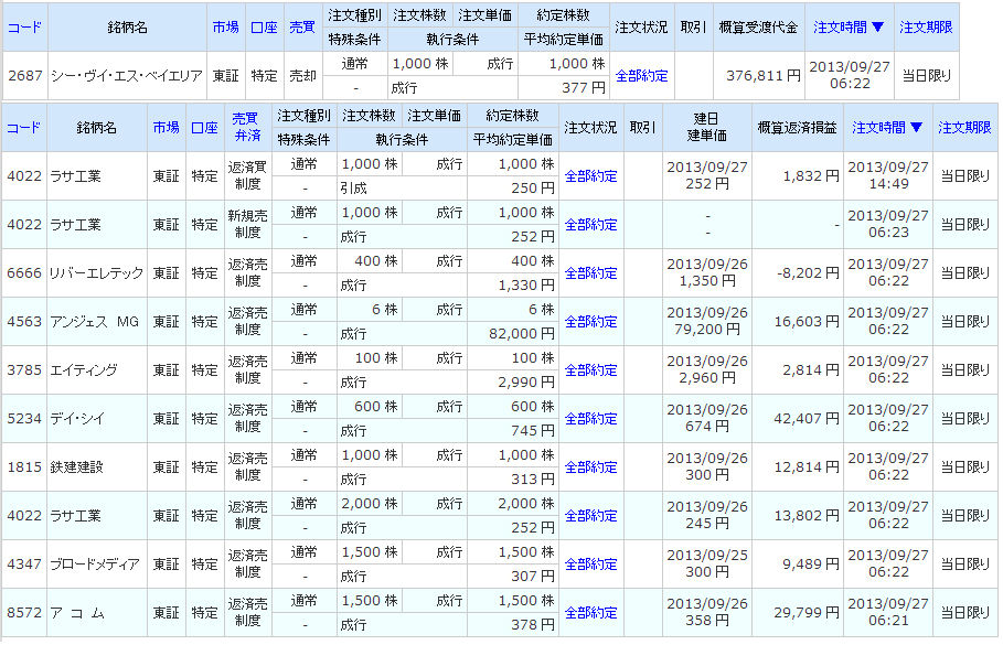 | 7836 アビックス | 買 | 09/25 ~ 09/30 | 1,600 | 281 | 260 | -35,100 |