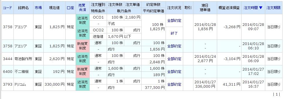 | 6081 アライドアーキテクツ | 買 | 01/30 | 100 | 3,470 | +7,000 |