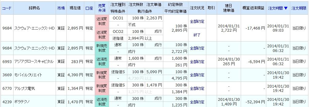 | 9684 スクウェア・エニックス・ホールディングス | 売 | 01/31 | 100 | 2,895 | -17,500 |