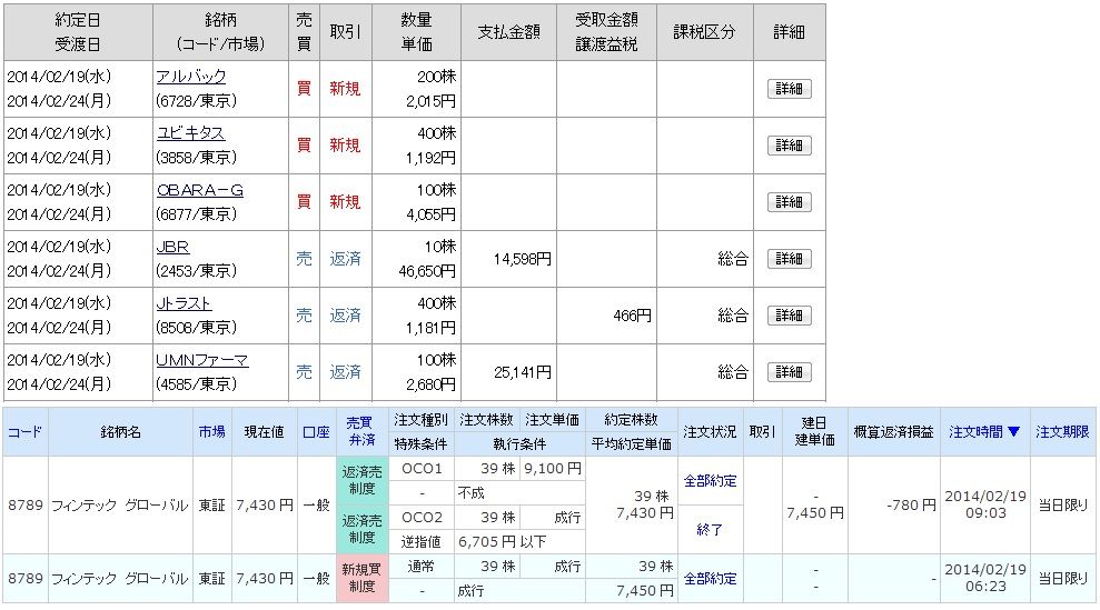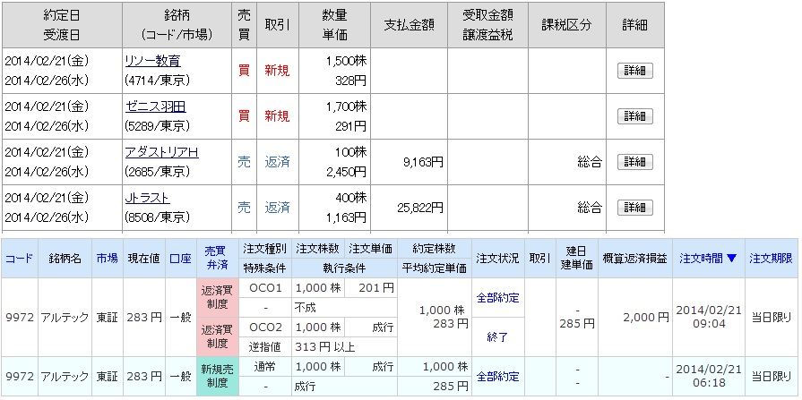 | 5289 ゼニス羽田 | 買 | 02/21 | 1,700 | 297 | +9,000 |
