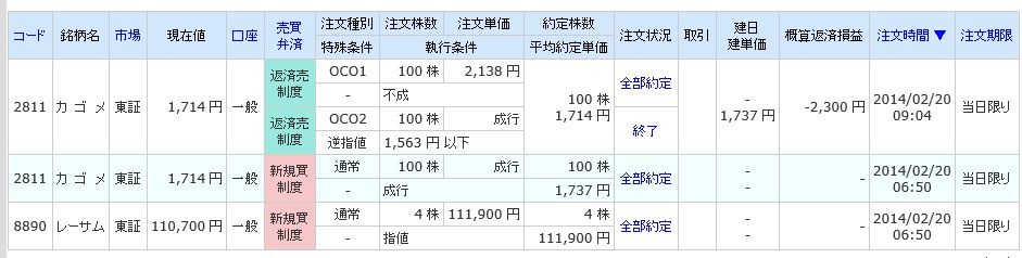 | 8890 レーサム | 買 | 02/20 | 4 | 117,300 | +21,400 |