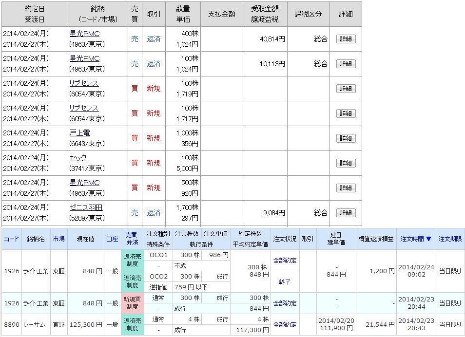| 1926 ライト工業 | 買 | 02/24 | 300 | 848 | +1,000 |