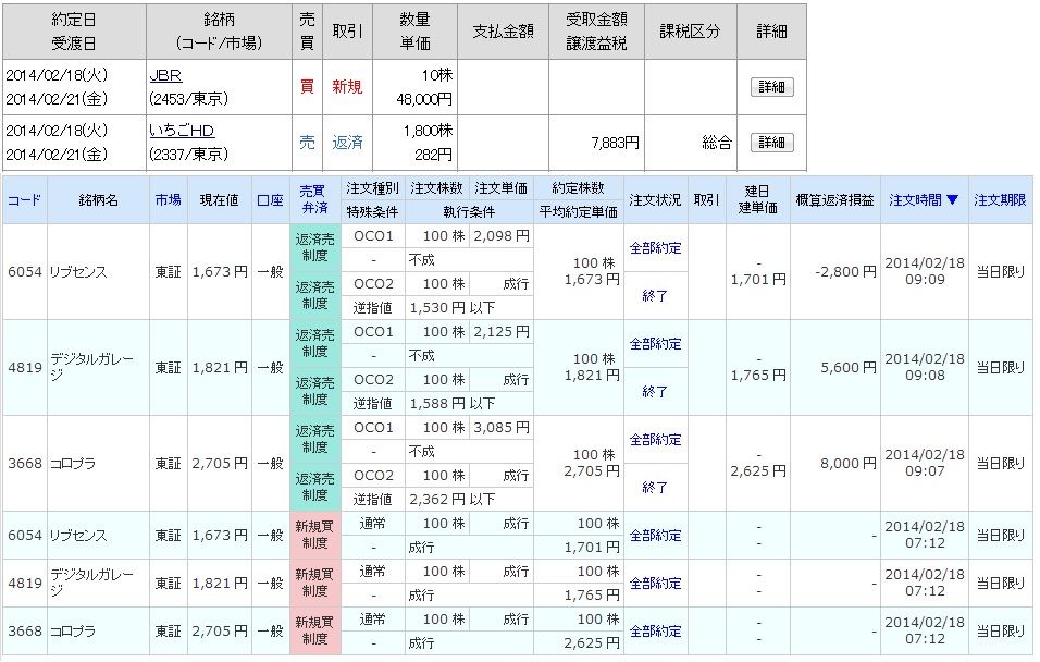 | 6054 リブセンス | 買 | 02/24 | 200 | 1,719 | -3,400 |