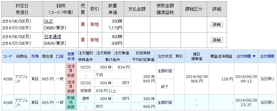 | 4288 アズジェント | 売 | 06/30 | 300 | 905 | +100 |