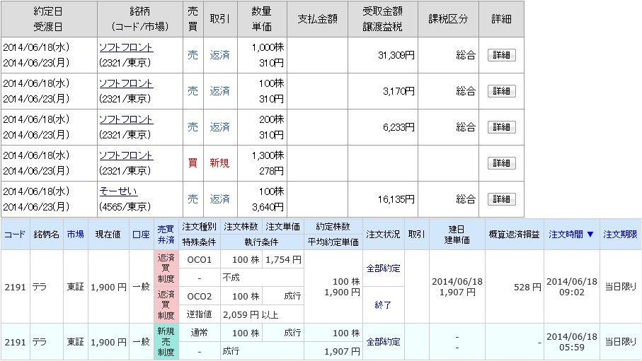 | 3810 サイバーステップ | 買 | 06/24 | 200 | 1,788 | -11,400 |
