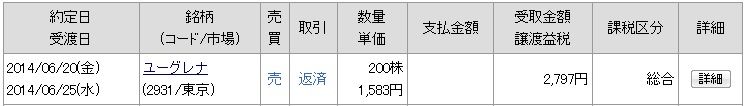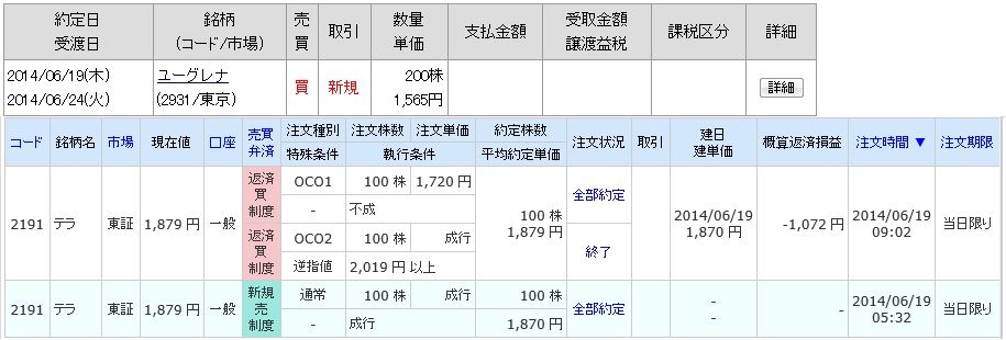 | 2931 ユーグレナ | 買 | 06/23 | 200 | 1,620 | -14,900 |