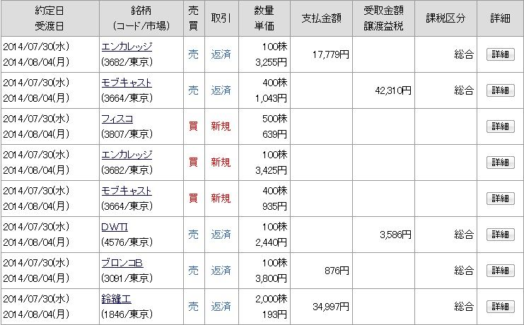 | 3807 フィスコ | 買 | 07/30 | 500 | 639 | +500 |