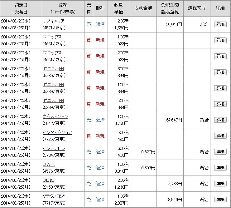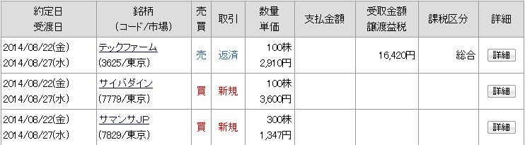 | 3756 豆蔵ホールディングス | 買 | 08/25 | 500 | 704 | +7,000 |