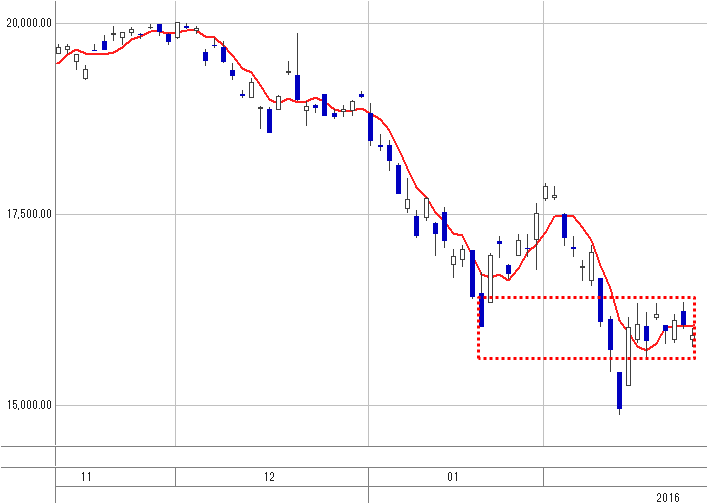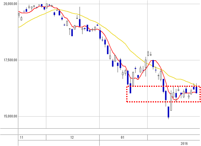 やっぱり20日移動平均線に跳ね返されて、右肩下がりの陰線となった2月最後の日経平均。