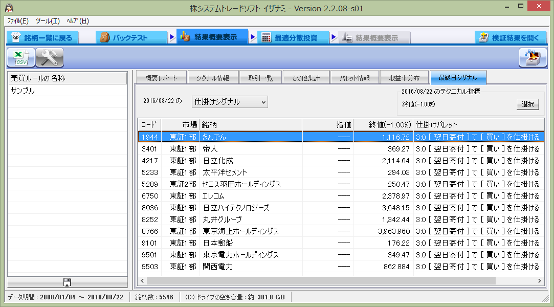 売買ルールの構築/検証/シグナル抽出は、「株システムトレードソフト イザナミ」を使用!