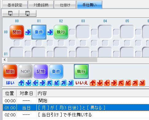 イザナミの条件パレットで設定できる条件文で以下の似たような文章があります。
