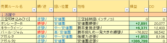 TO戦略は久々に順張り「パール・ジャム」がHITしたものの、早速スリッページ&高値掴みのコンボを食らってマイナス突入です。(泣)
