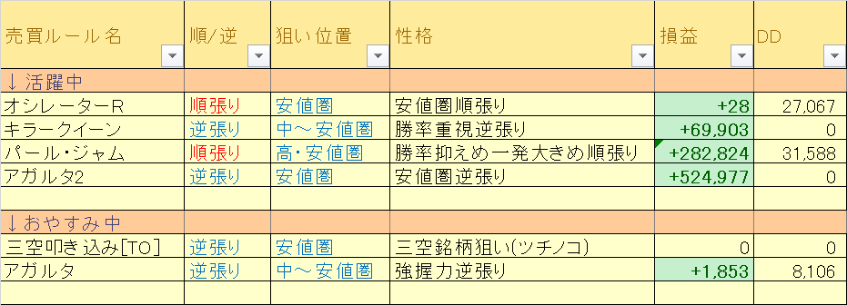 というわけで、またもや順張り「パール・ジャム」が足を引っ張ってマイナスの日となりました。