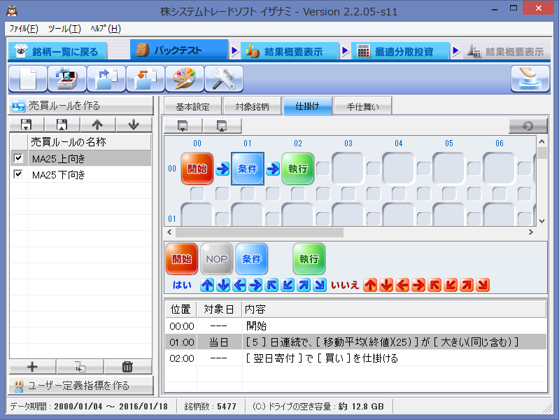 売買ルールの構築/検証/シグナル抽出は、「株システムトレードソフト イザナミ」を使用!