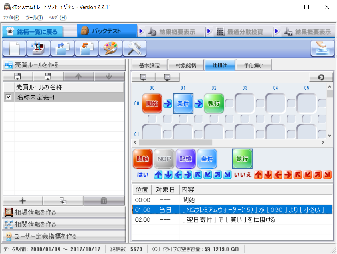 売買ルールの構築/検証/シグナル抽出は、「株システムトレードソフト イザナミ」を使用!