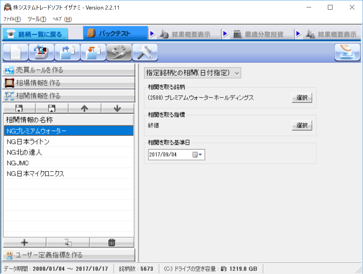 今日の取引で引いちゃったへっぽこ銘柄。こんな値動きの銘柄は引くはずじゃなかった!シグナルから外したい!と思ったら、相関情報機能を使うとよいですよ。