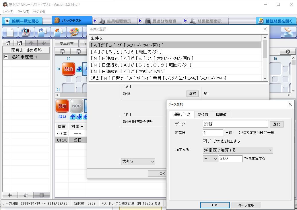 売買ルールの構築/検証/シグナル抽出は、「株システムトレードソフト イザナミ」を使用!