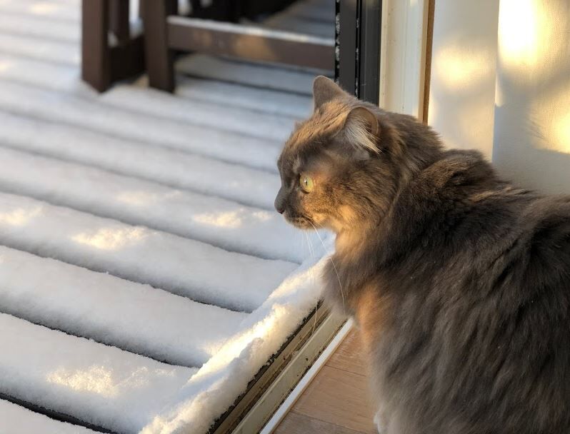 2019年の12月はあんまり雪がつもりませんでした。でも猫のミワさんは興味津々。