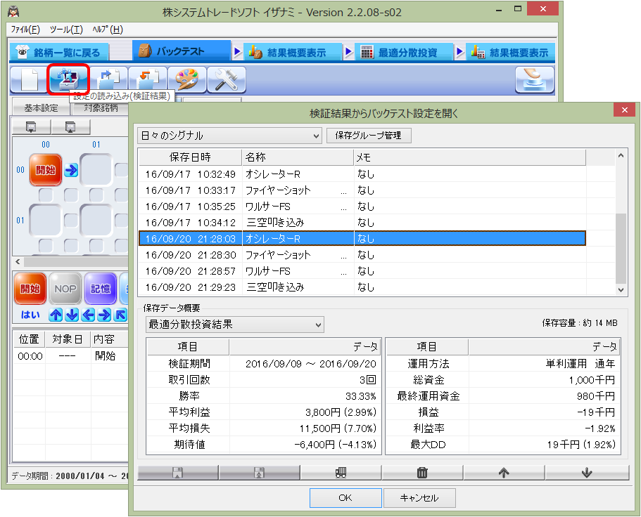 売買ルールの構築/検証/シグナル抽出は、「株システムトレードソフト イザナミ」を使用!