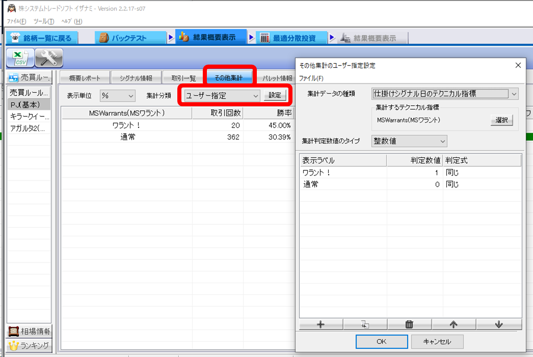 売買ルールの構築/検証/シグナル抽出は、「株システムトレードソフト イザナミ」を使用!