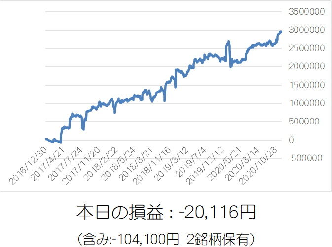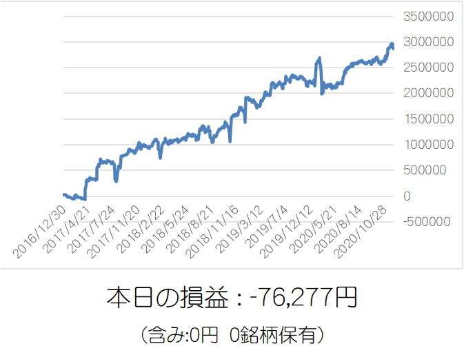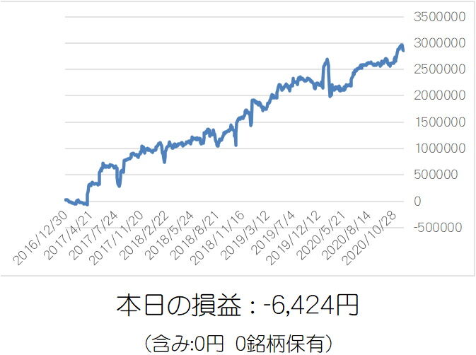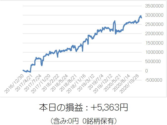 11月最後は逆張り売りが5銘柄仕掛けてちょいプラスでフィニッシュ。ノーポジションでスッキリ。