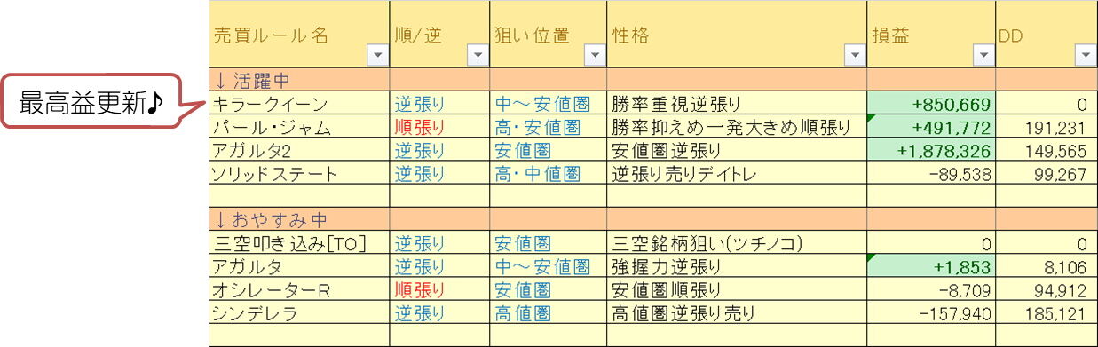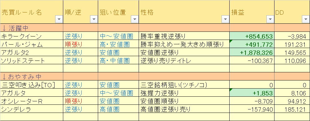 TO戦略は逆張り買いの利確と逆張り売りでちょい損でほぼ動きなし。
