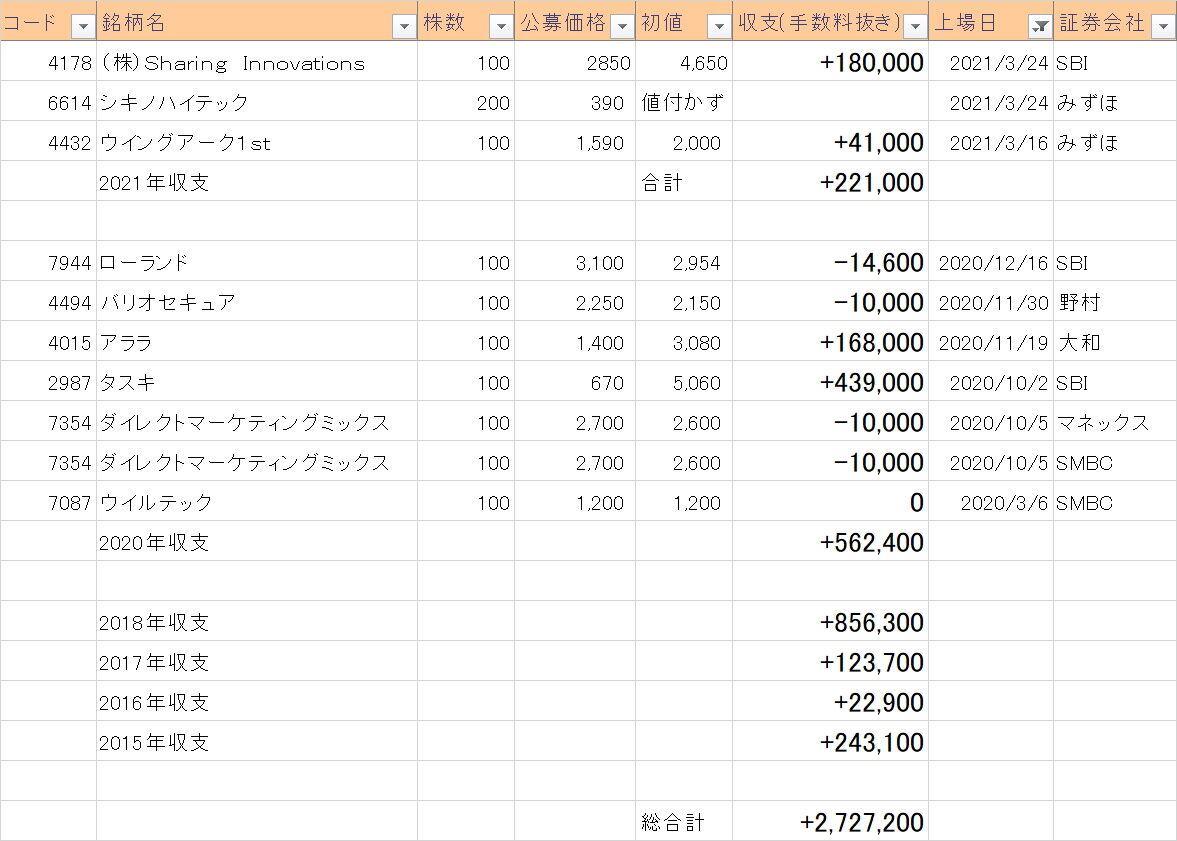 これで今年のIPO収益は+387,200と、かなりのハイペースで進んでおります。(´∀`*)ウフフ