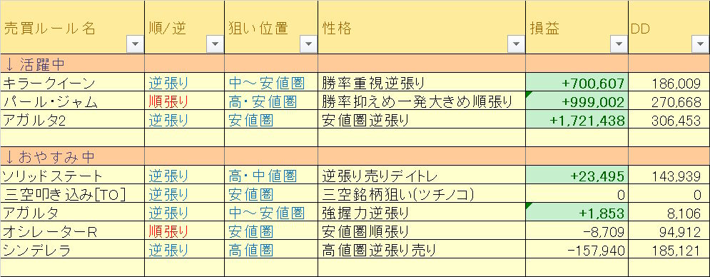 もともと勝率が低めの戦略とはいえ、最近負けてばかりなのですが、今回も案の定の即日
