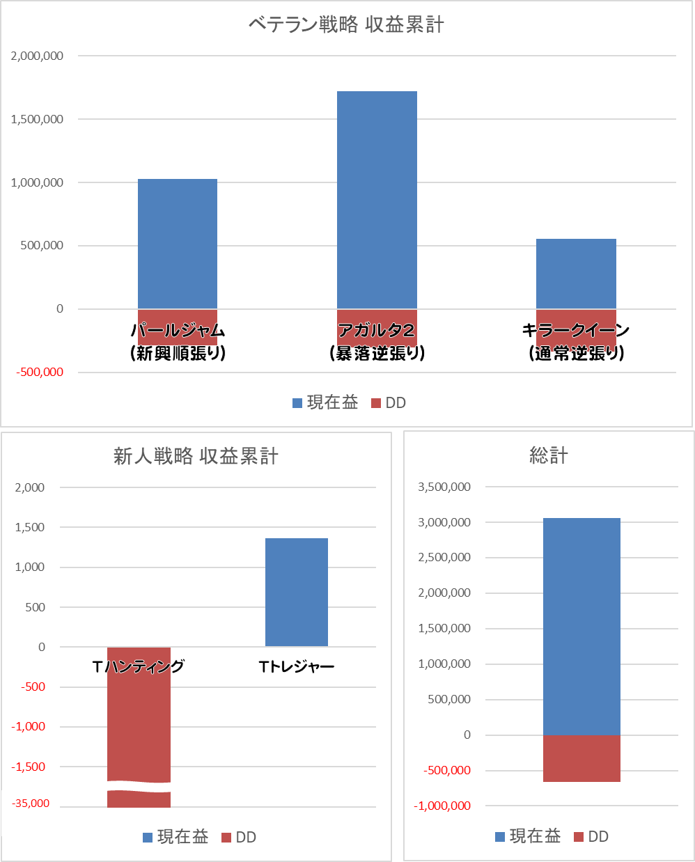 各戦略の利益とドローダウンが一目で分かるように作成中。