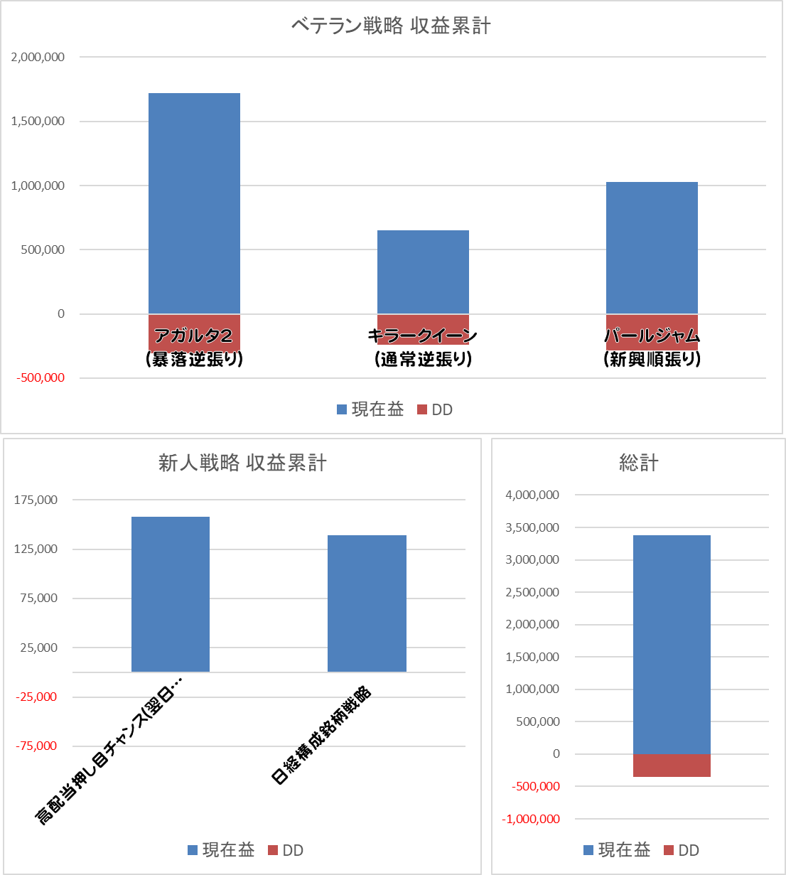 2024年勝率100%だった逆張りキラークイーンが遂に黒星を一つつけたものの、他は大きく下げることもなくポジションはよい状態を維持しています。