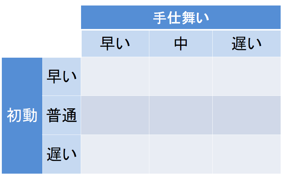 初動と手仕舞いの速度の違いを使ってマトリクス(表)にしてみました。