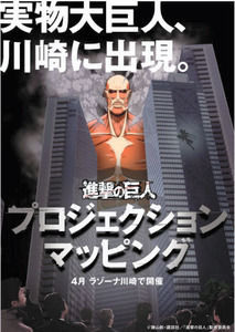 大内がKindleで読んでいる人気マンガの「進撃の巨人」ですが、これをテーマとしたプロジェクションマッピングのイベントが4/10~12の夜にラゾーナ川崎プラザ(JR川崎駅前)のルーファ広場開催するそうです。