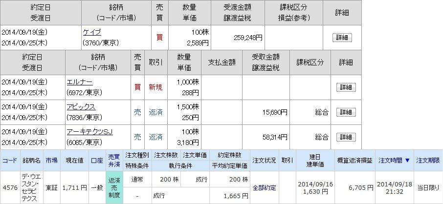 | 3760 ケイブ | 買 | 09/19 | 100 | 2,589 | -9,400 |