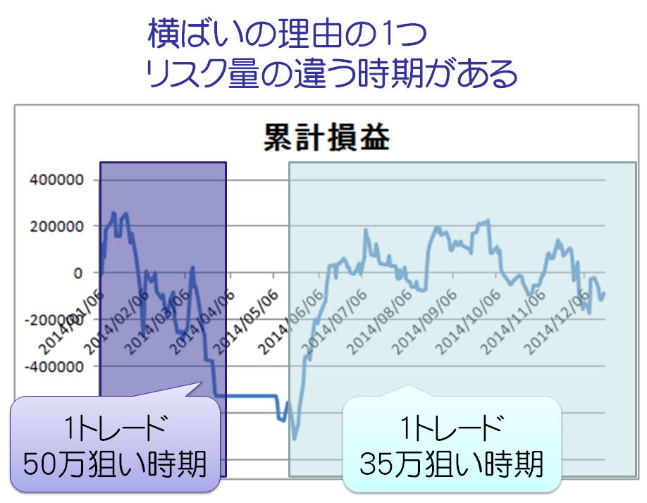 あと、ほぼ横ばいとなった理由の1つが、戦略を組み直した時にリスクも下げたこと。