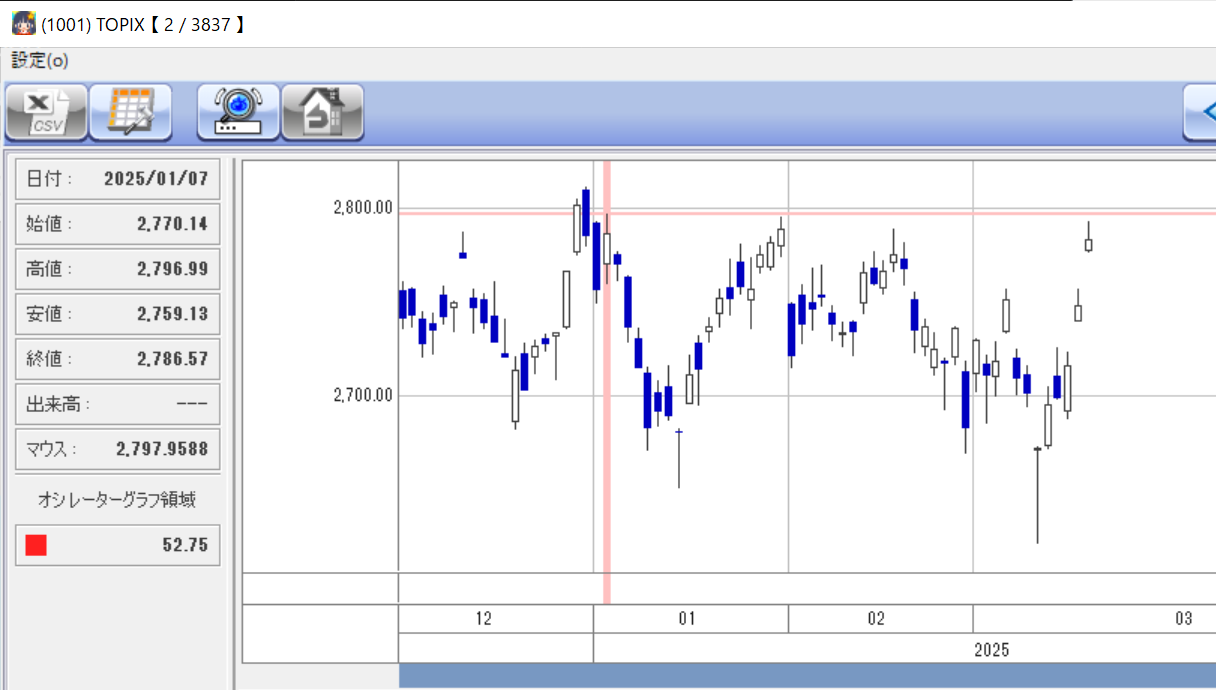 日経平均はまだ高値更新には程遠いですが、TOPIXは2025年高値にかなり近づいてます。