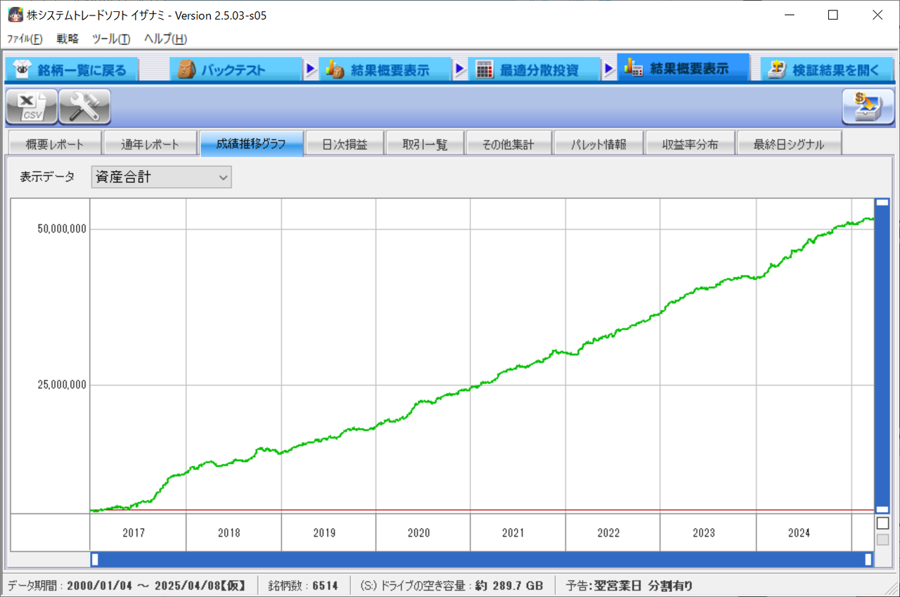 標準設定ファイルで年単位検証した結果ですが、4/9時点で最高益更新寸前!という凄い戦略セットです。